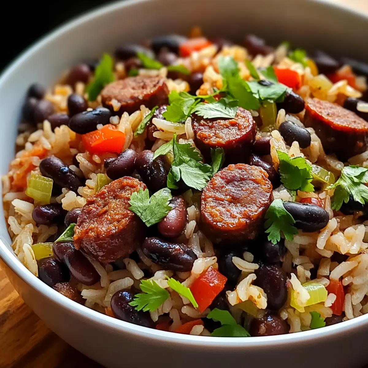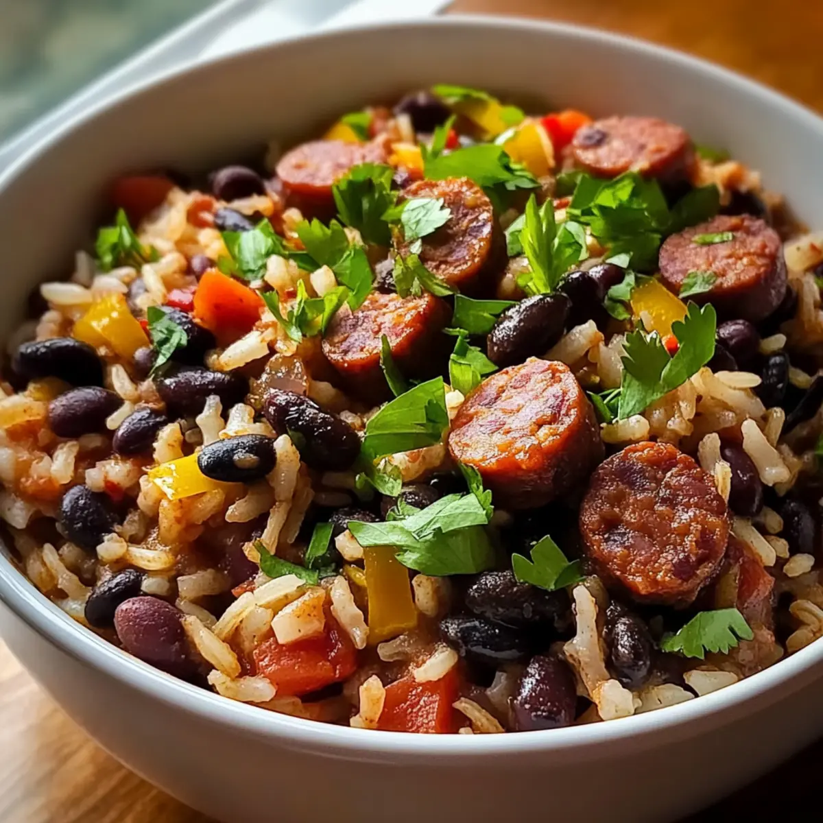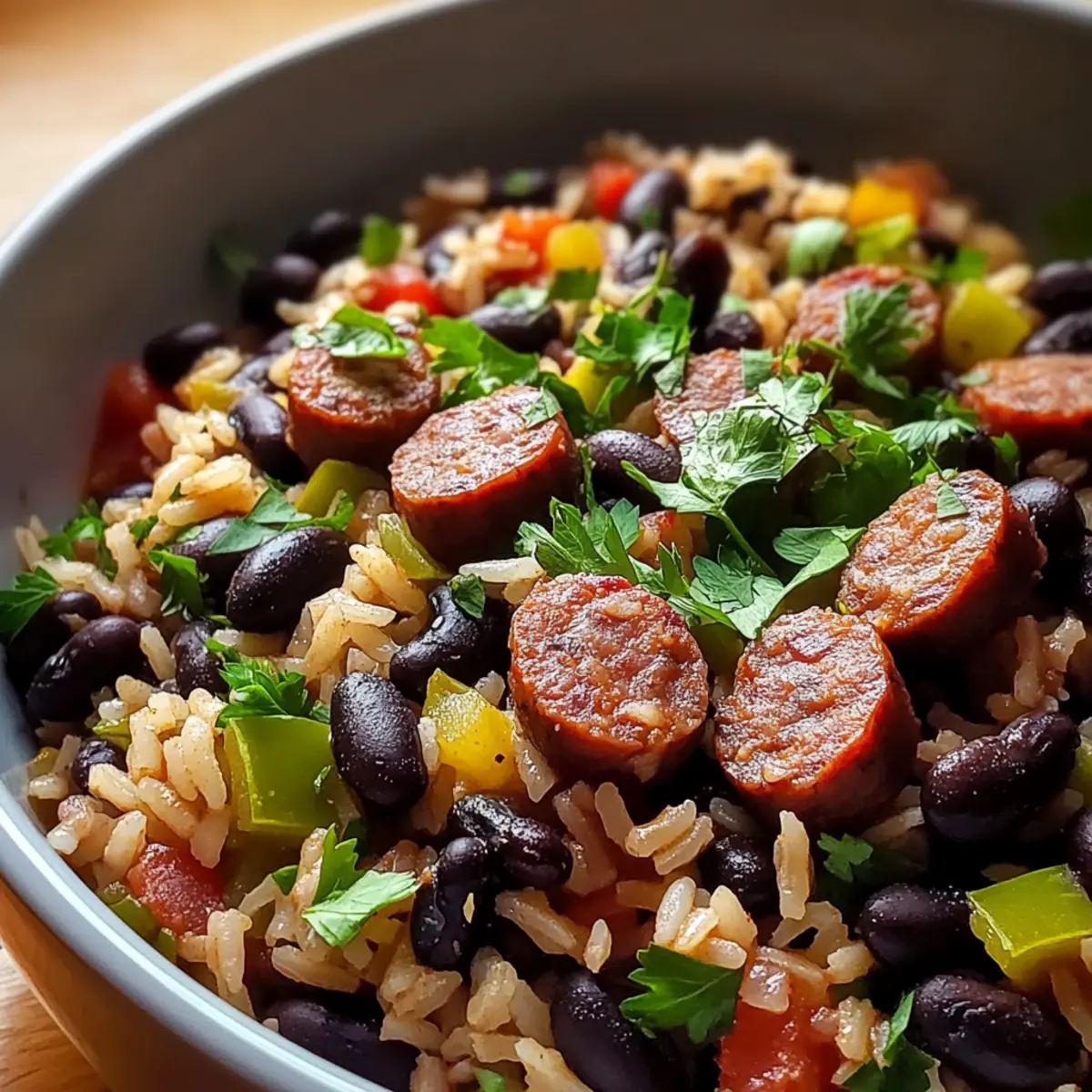 Savory Black Beans and Rice with Beef Sausage: Comfort in a Bowl