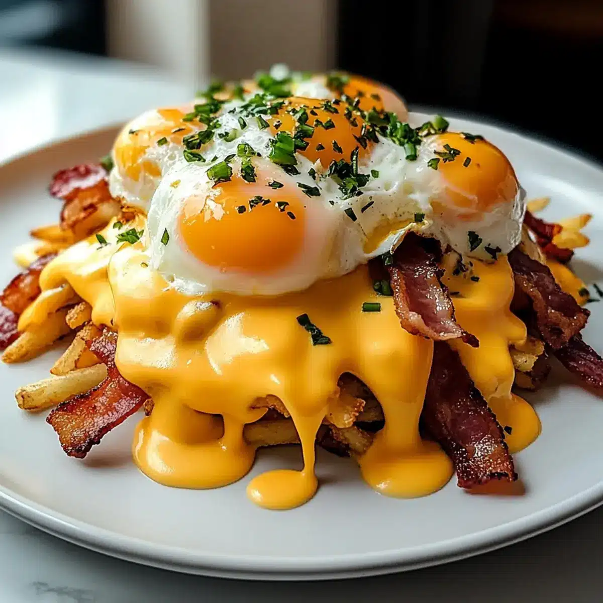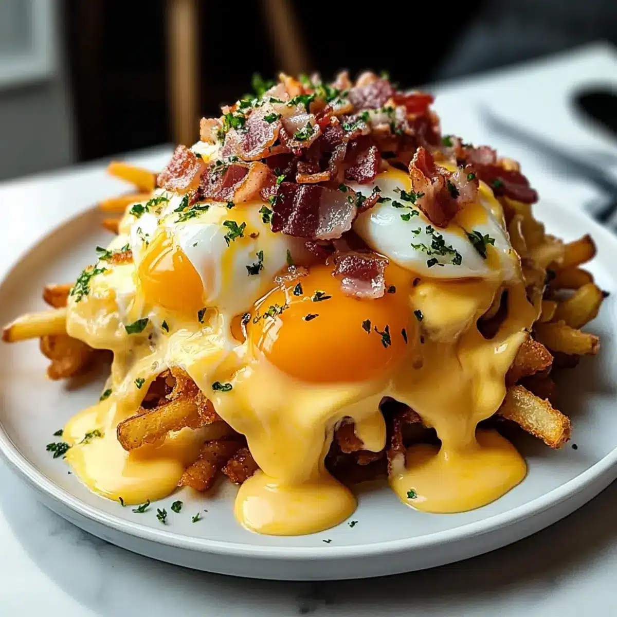 Gourmet twist: This dish elevates traditional poutine into a luxurious breakfast experience that’s both comforting and sophisticated.