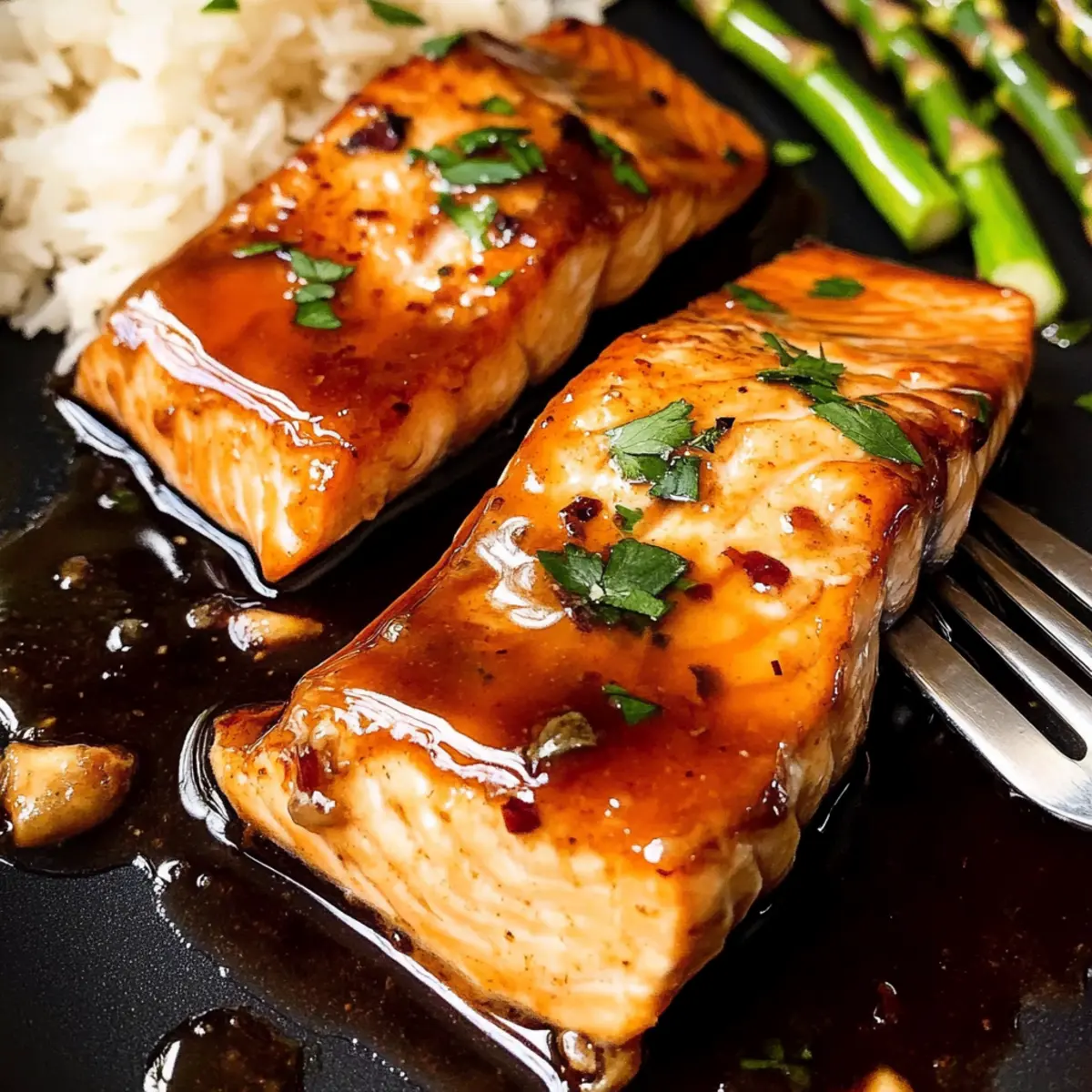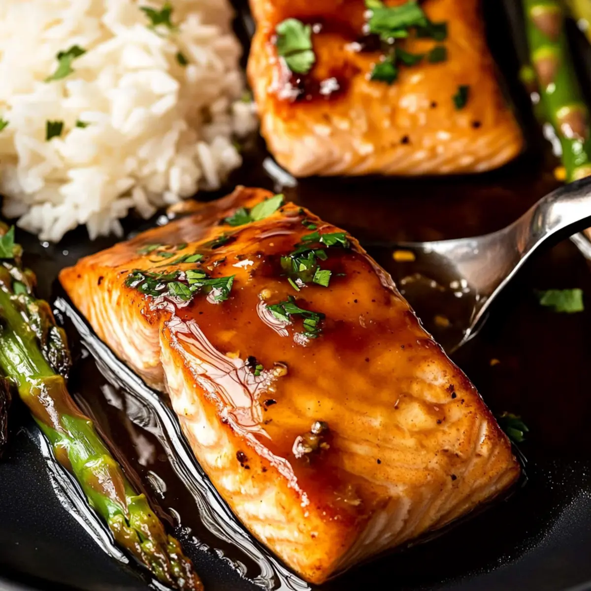 Sautéed Asparagus: Quick to prepare, the slight tenderness of asparagus pairs beautifully with the savory-sweet salmon, adding vibrant color to your meal.