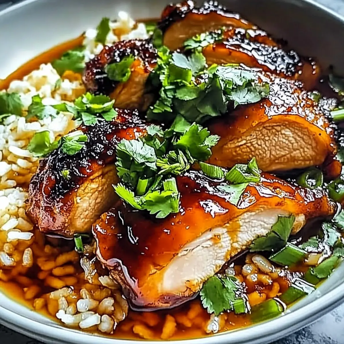 Caramelised Soy Chicken in Garlic Ginger Broth with Rice Bliss