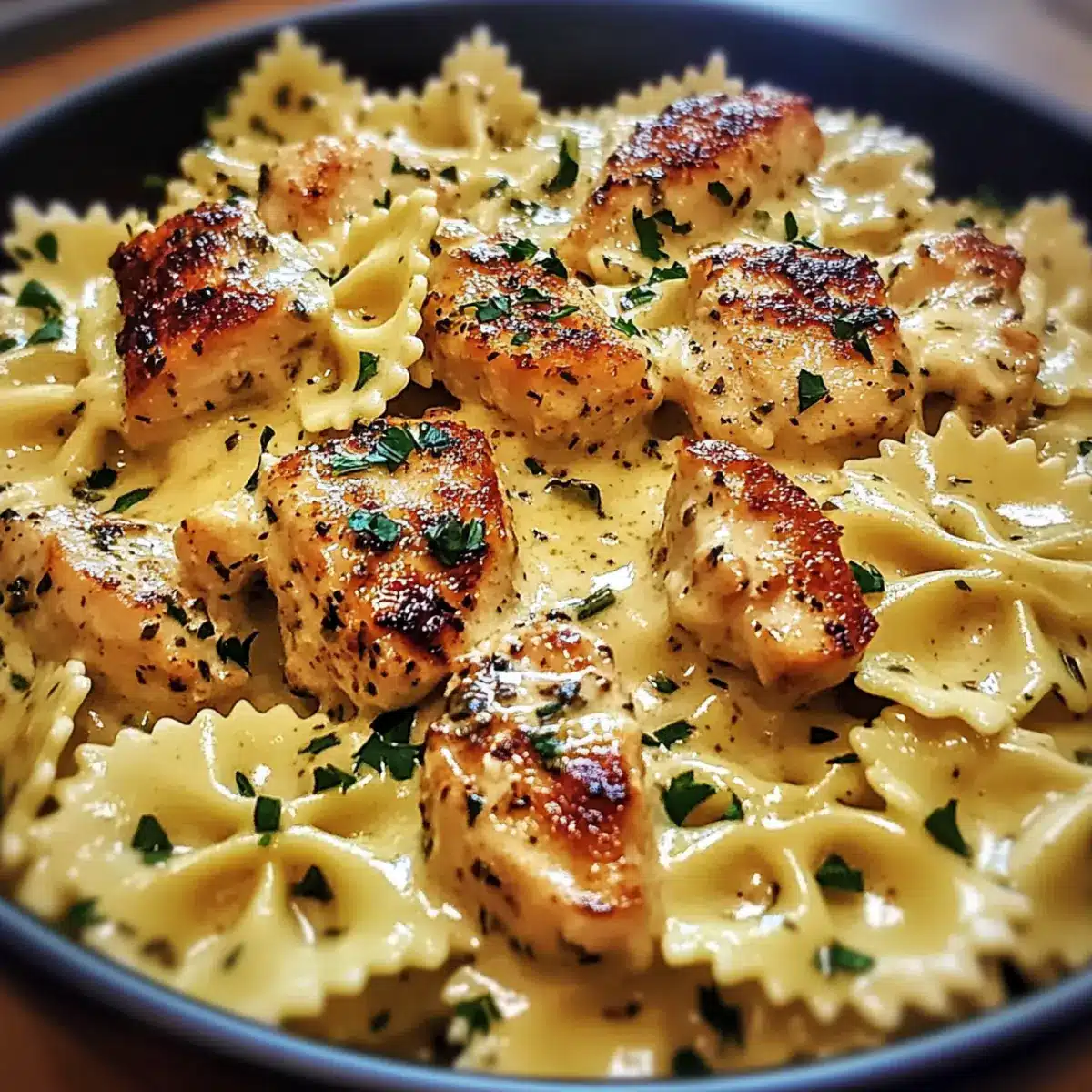 Creamy Mozzarella Garlic Butter Chicken Bowties Delight