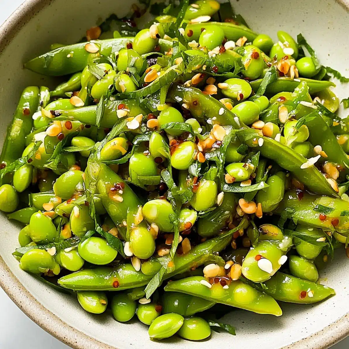 Warm Up: Serve it slightly warm after lightly sautéing the snap peas and edamame in sesame oil, creating a cozy and comforting dish.
