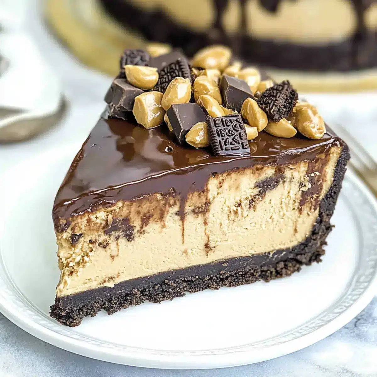 Nutty Texture: Mix in chopped peanuts or crushed Reese’s cups to the cheesecake filling for an extra crunch and flavor burst that will enchant peanut butter lovers.