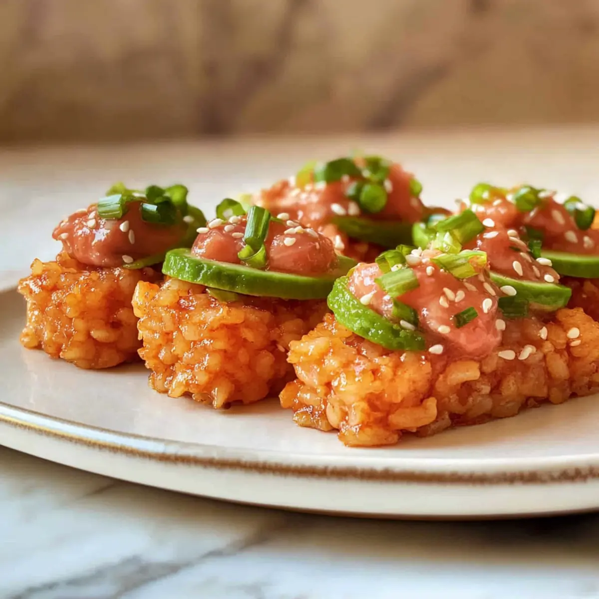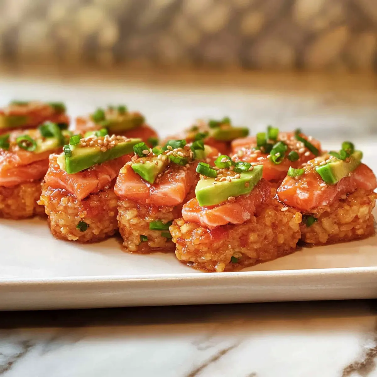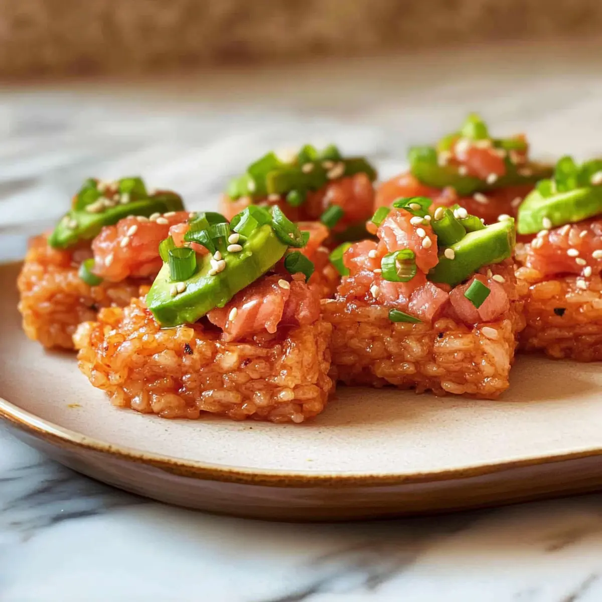 Of course! To make this recipe gluten-free, simply swap out the soy sauce for tamari. If you’re making it for someone with a seafood allergy, you can use diced tofu or grilled chicken instead of spicy salmon, ensuring everyone can enjoy these amazing crispy rice delights!