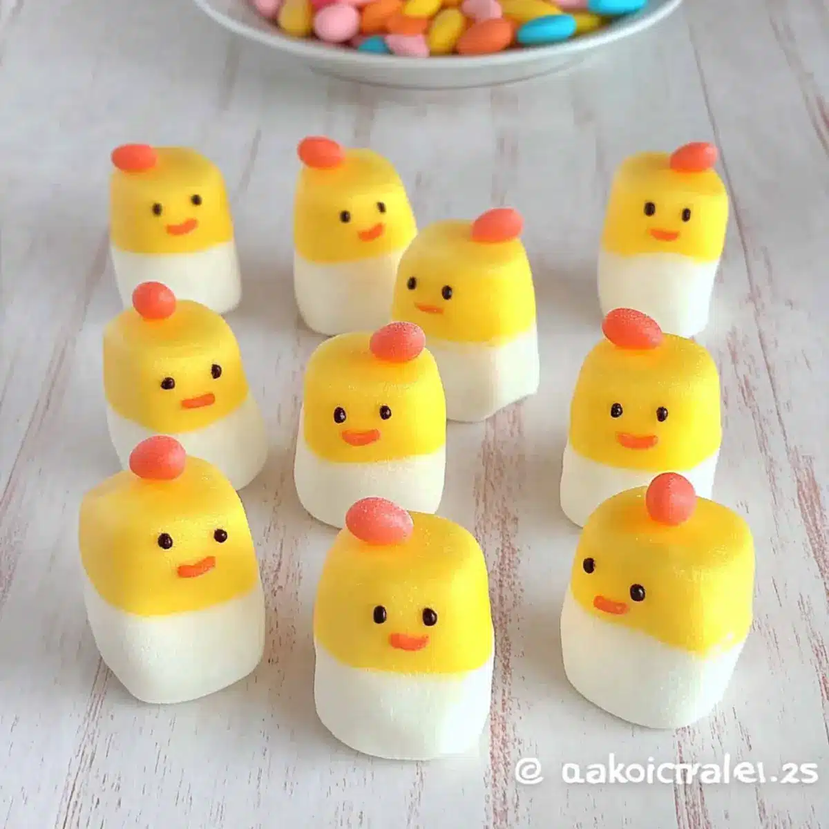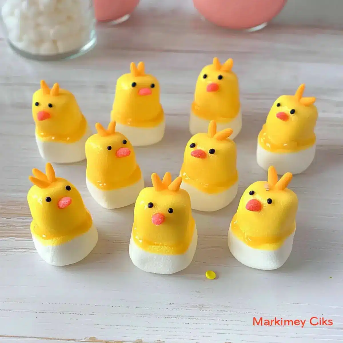 - Serve and Enjoy: Once fully set, display your Cute Marshmallow Chicks on a festive cake stand or use them as cupcake toppers.