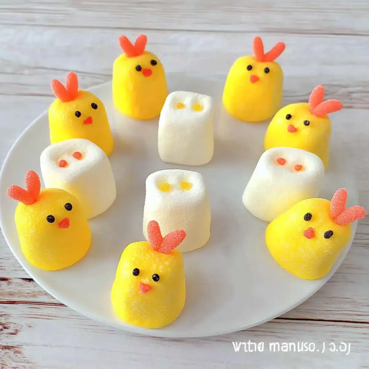 - Mini Chicks: Create mini marshmallow chicks by cutting large marshmallows in half and coating them for cute little bite-sized delights!