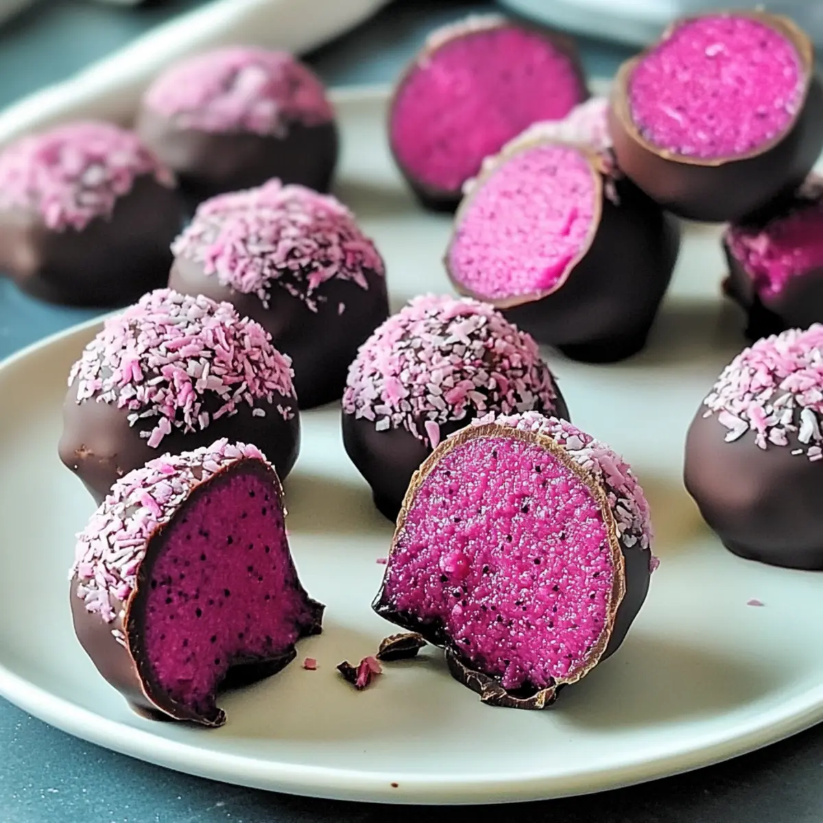 As I was blending vibrant hues of tropical fruit and the rich embrace of dark chocolate, the kitchen filled with a delightful aroma that whisked me away to sun-kissed beaches. These No-Bake Dark Chocolate Dragon Fruit Coconut Treats are a lush getaway for your taste buds, combining the natural sweetness of pitaya and the creamy texture of coconut in a simple preparation. They are not only a treat for the eyes but also a healthy snack option that effortlessly fits into a vegan lifestyle. Ready in a flash, these bites can be transformed into bars, balls, or even decorative shapes for gatherings, making them the perfect light dessert or post-workout refreshment. Curious to see how this tropical indulgence can brighten your day? Let’s dive right in!
