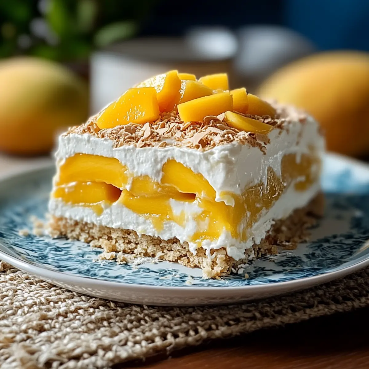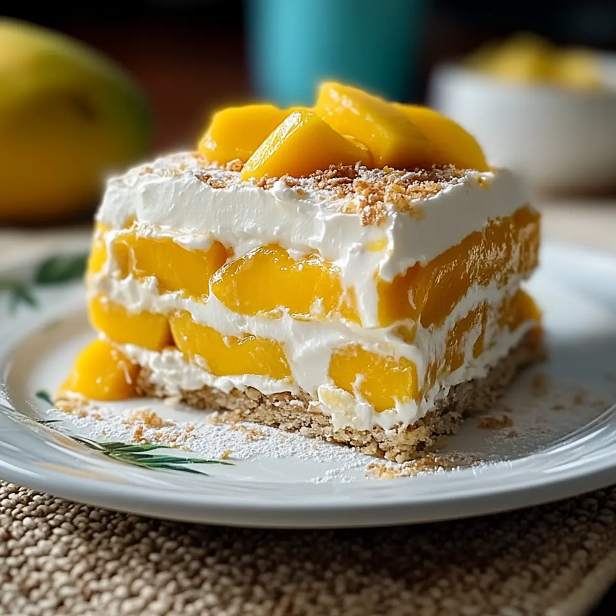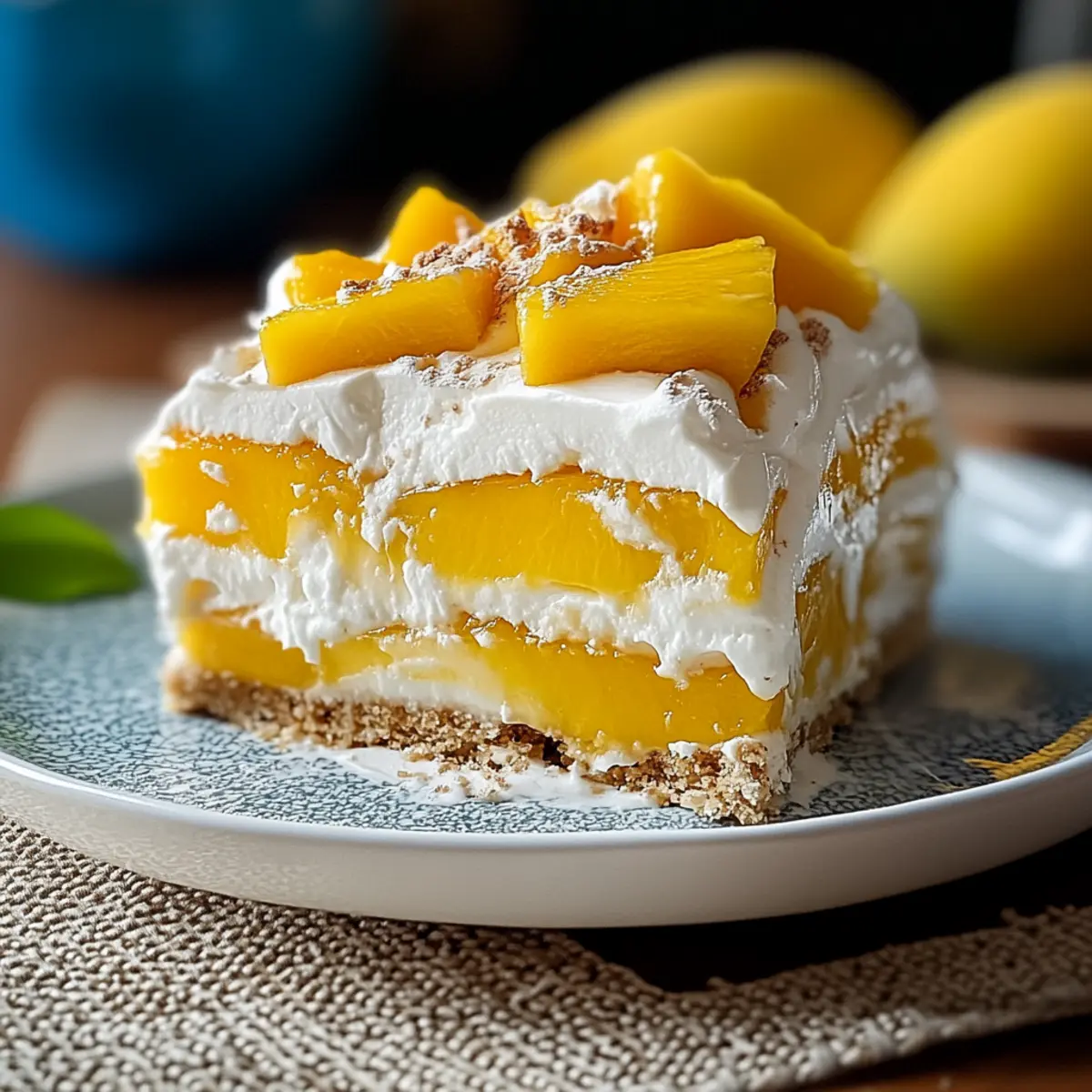 Tropical Fusion: Combine other tropical fruits, such as pineapple or kiwi, in addition to the mango for a colorful and flavorful fruit medley. Each layer offers a different fruity surprise that elevates the dessert!