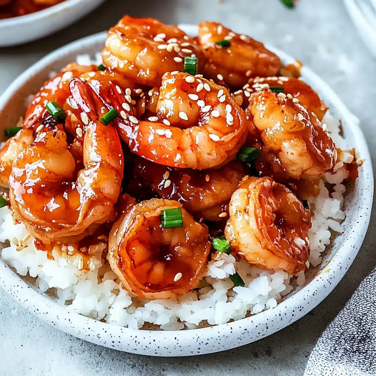- Serve the Firecracker Shrimp immediately, garnished with sesame seeds and chives alongside fluffy rice.