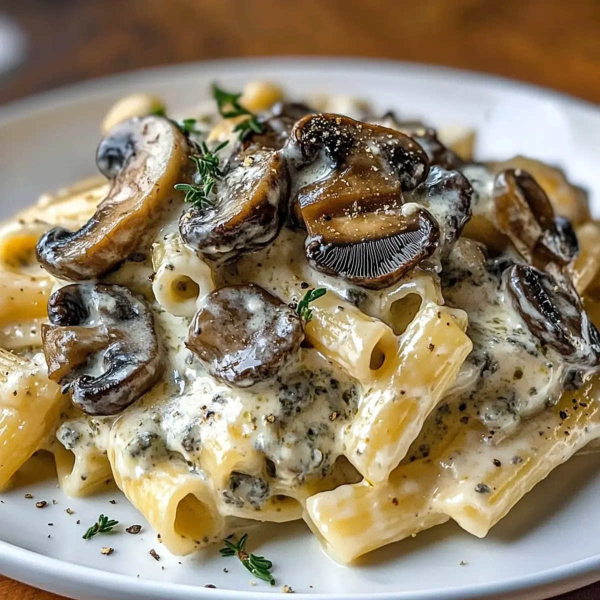 Remove the saucepan from heat and drizzle in 1 to 2 teaspoons of white truffle oil, stirring to combine. Add 1 to 2 tablespoons of your choice of ground or fresh herbs such as sage, oregano, or thyme for added freshness. Taste and adjust seasoning with more salt or pepper as necessary, ensuring your Gorgonzola Truffle Cream Mushrooms are rich and flavorful.