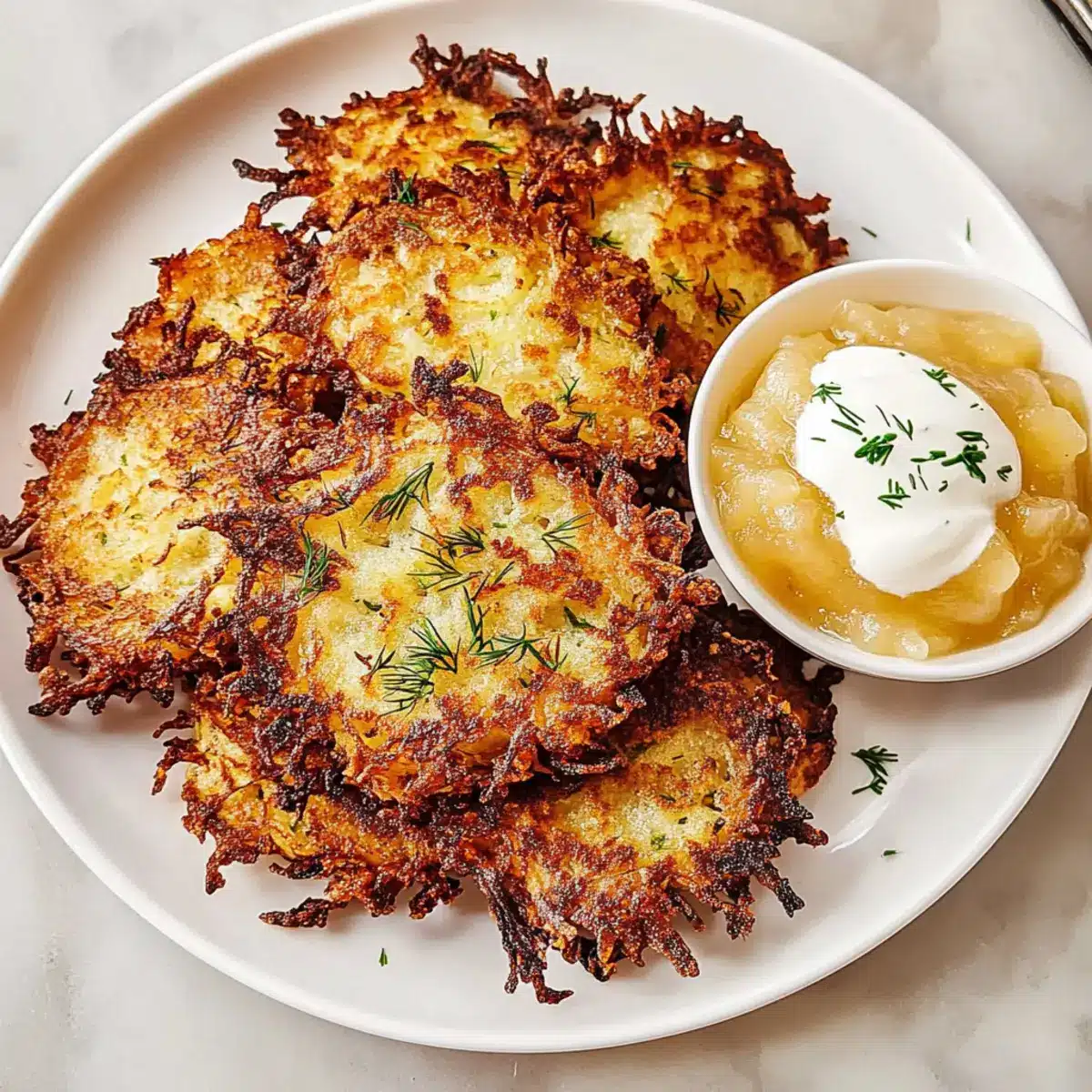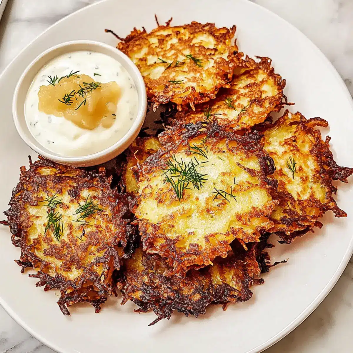 As the sun sets on the first night of Hanukkah, the scent of crispy potatoes sizzling in hot oil fills the air, promising comfort and warmth. I can almost hear the laughter of family gathered around the table as we prepare festive delights, with herby latkes stealing the spotlight. These crispy herbed latkes are not just a traditional dish but a canvas for creativity—easily customizable to suit every palate. Besides being a crowd-pleaser, they’re a breeze to whip up, allowing you to spend more time enjoying the festivities and less time in the kitchen. Get ready to impress your loved ones with these delicious, fluffy-on-the-inside, crunchy-on-the-outside latkes that will elevate your holiday dining experience! What unique toppings will you try this year?