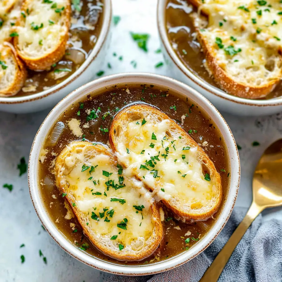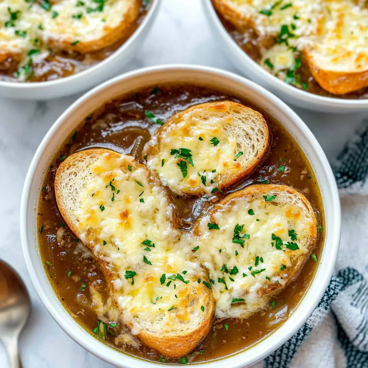 Impressive Presentation: Topped with gooey melted Gruyere and crispy baguette, this soup is as beautiful as it is delicious—perfect for impressing guests at your next gathering.