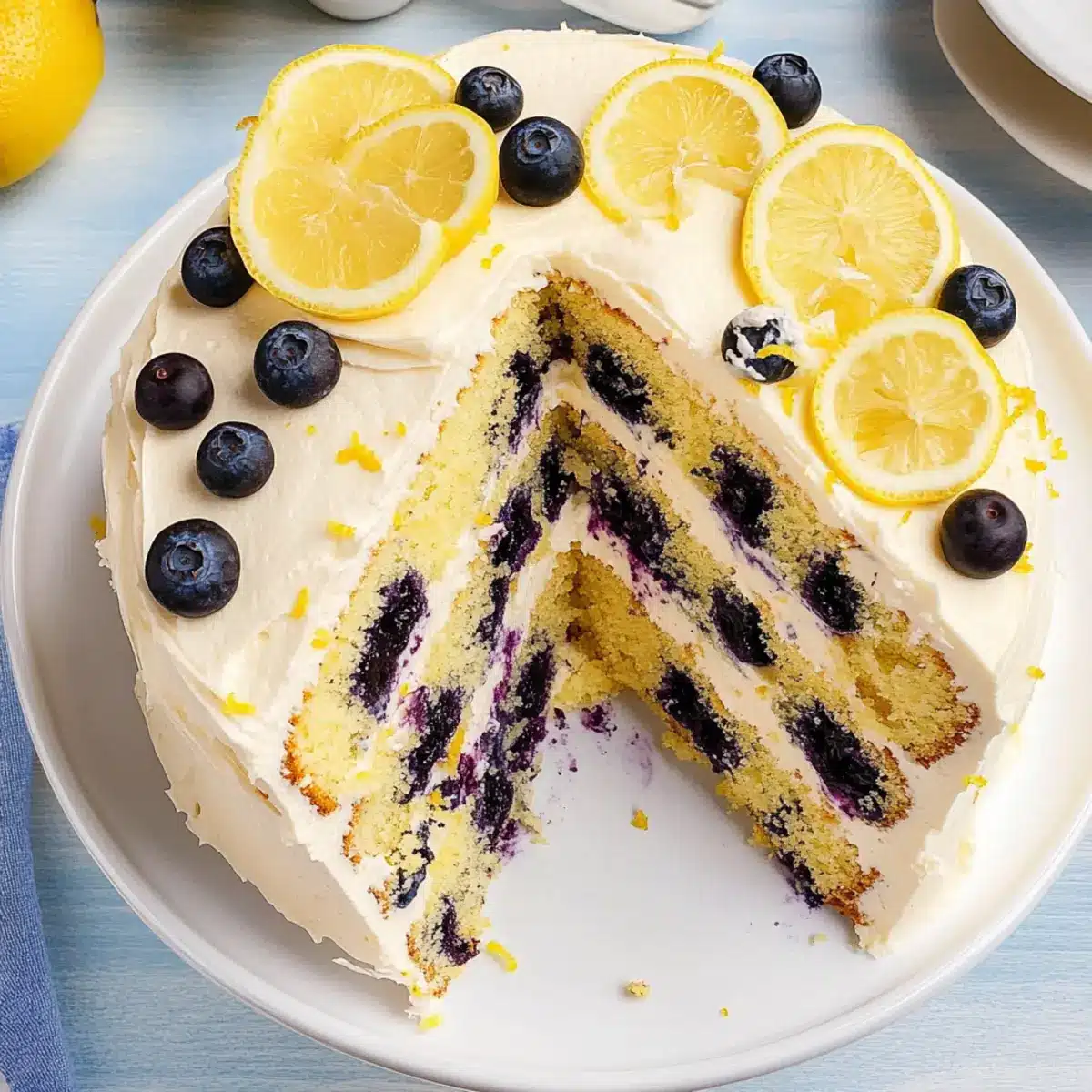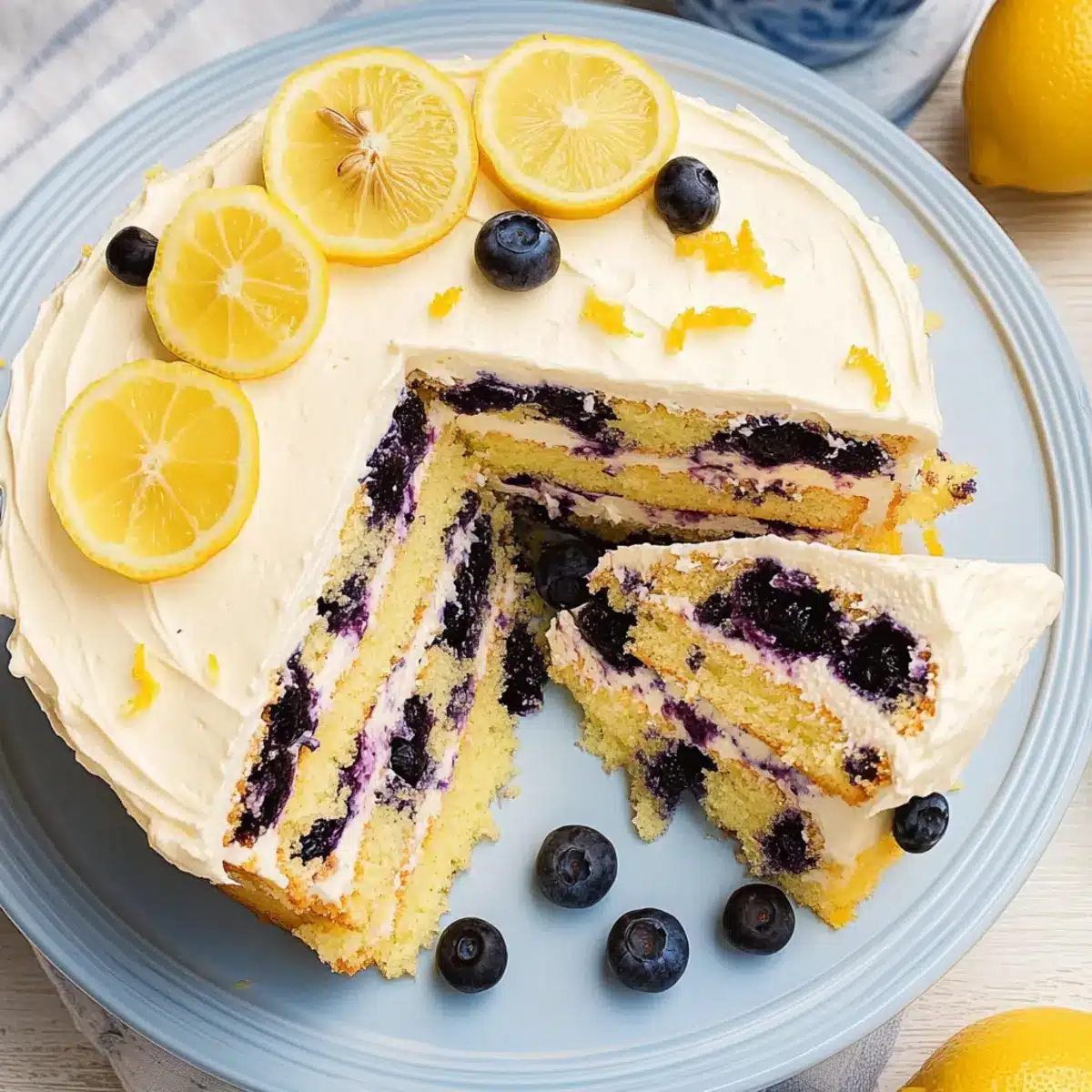 Zesty Additional Layer: Make this cake even more exciting by incorporating a layer of lemon curd between the cake layers. The tangy burst of lemon complements the blueberries beautifully.