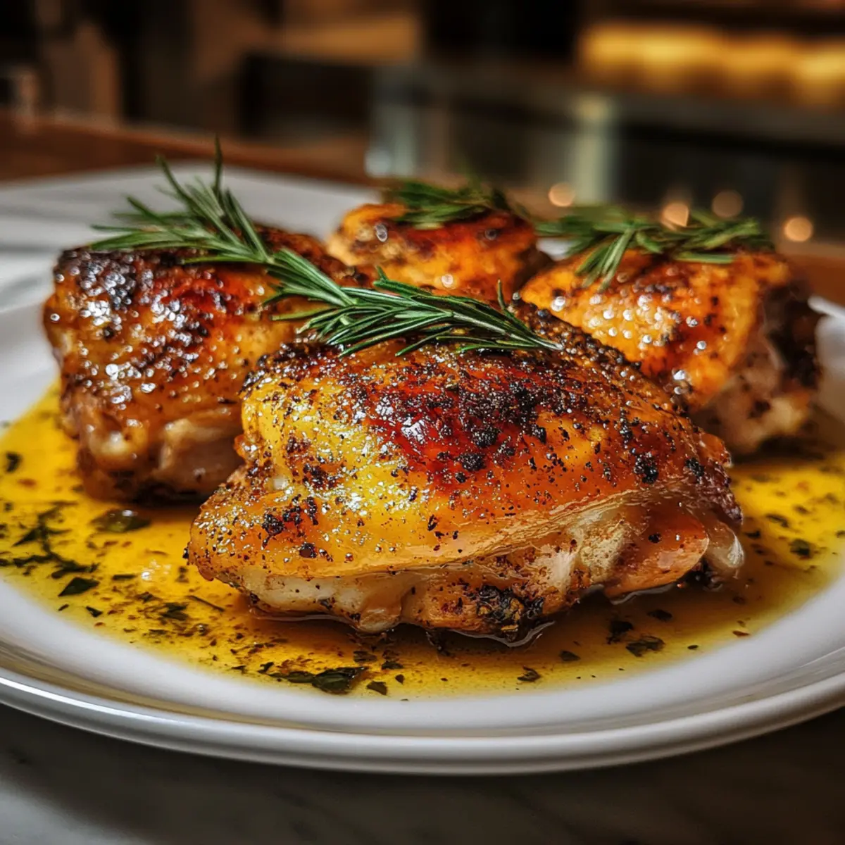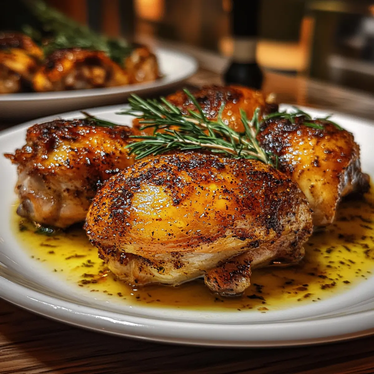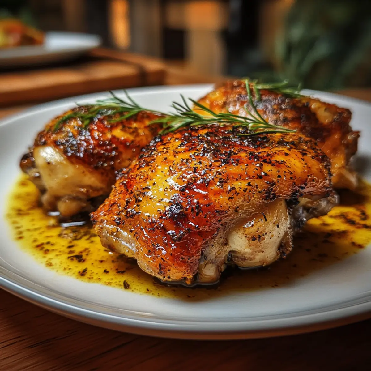 Bake the chicken thighs in the preheated oven for 35 to 40 minutes. You’ll know they’re done when the skin is golden brown and the internal temperature reaches 165°F (74°C). To maximize juiciness, baste the thighs with their own juices halfway through the roasting time, allowing the flavors to meld beautifully.
