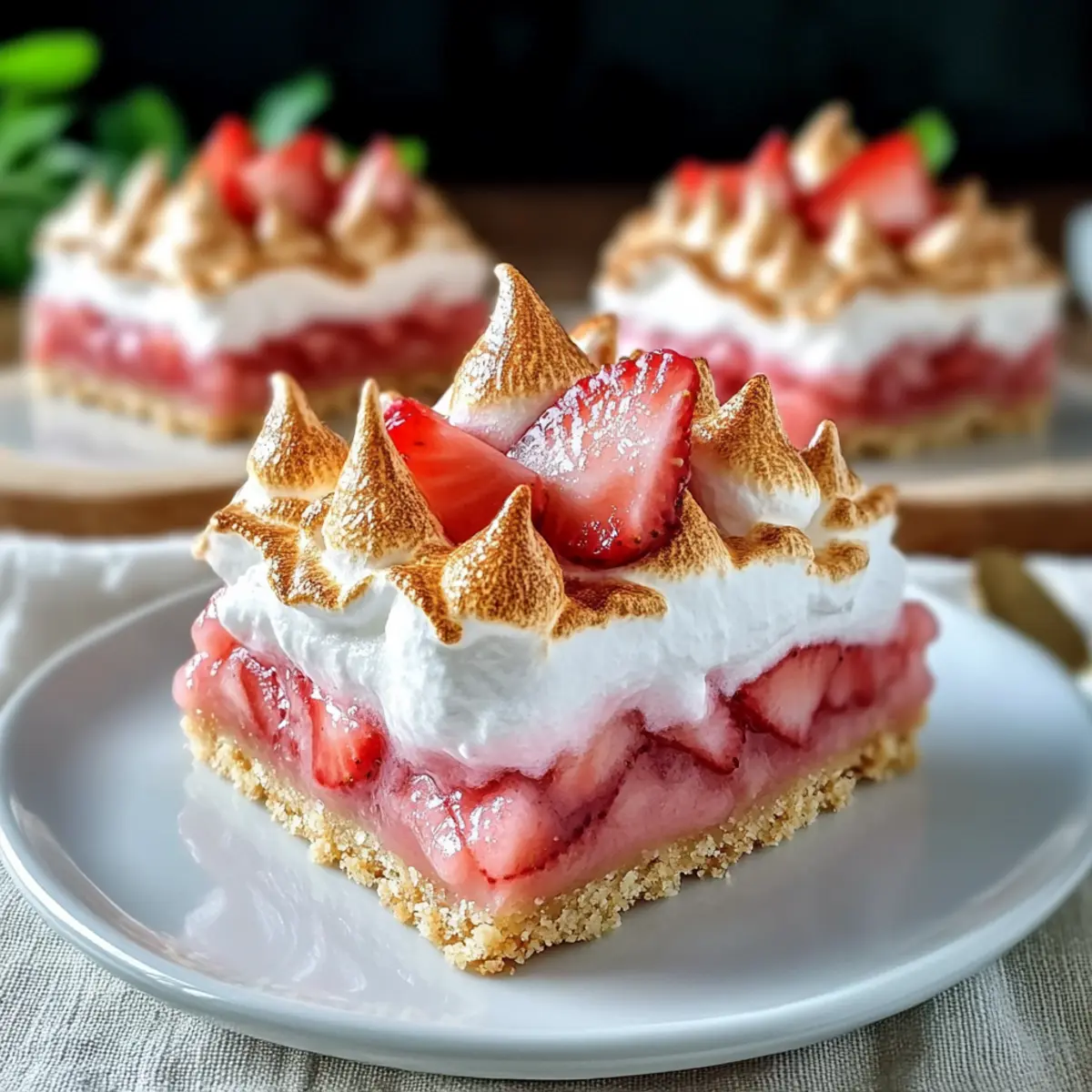 As I flipped through my favorite dessert cookbook, the warmth of summer evenings enveloped me, igniting sweet cravings for something light yet indulgent. That’s when I stumbled upon the irresistible Low Carb Strawberry-Rhubarb Meringue Pie Bars—an absolute game changer for any health-conscious dessert lover. With their tantalizing blend of tart rhubarb and juicy strawberries, all topped with a fluffy meringue, these bars offer a healthier way to satisfy that sweet tooth without compromising on flavor. Quick to prepare and packed with vibrant colors, they’re perfect for potlucks or cozy family nights, proving that delicious desserts can indeed be low-carb and guilt-free. Curious about how to whip up this delightful treat? Let’s dive in!
