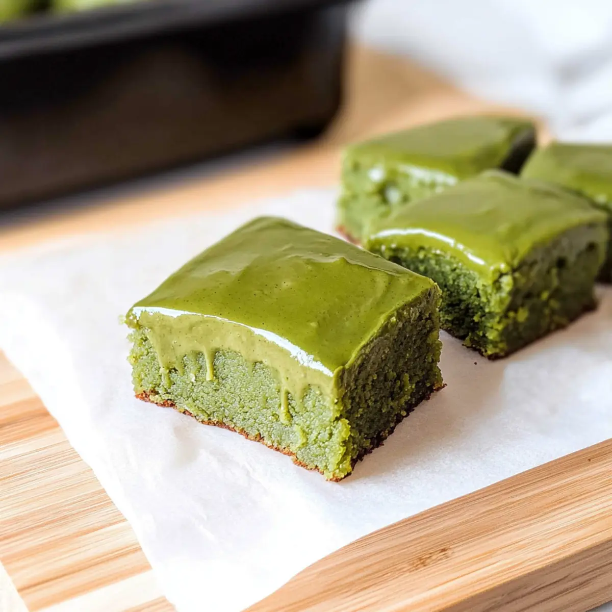 Vegan: Replace the eggs with flax eggs (1 tablespoon flaxseed meal + 2.5 tablespoons water = 1 egg) for a completely vegan-friendly treat. The matcha flavor still shines through without compromising texture.