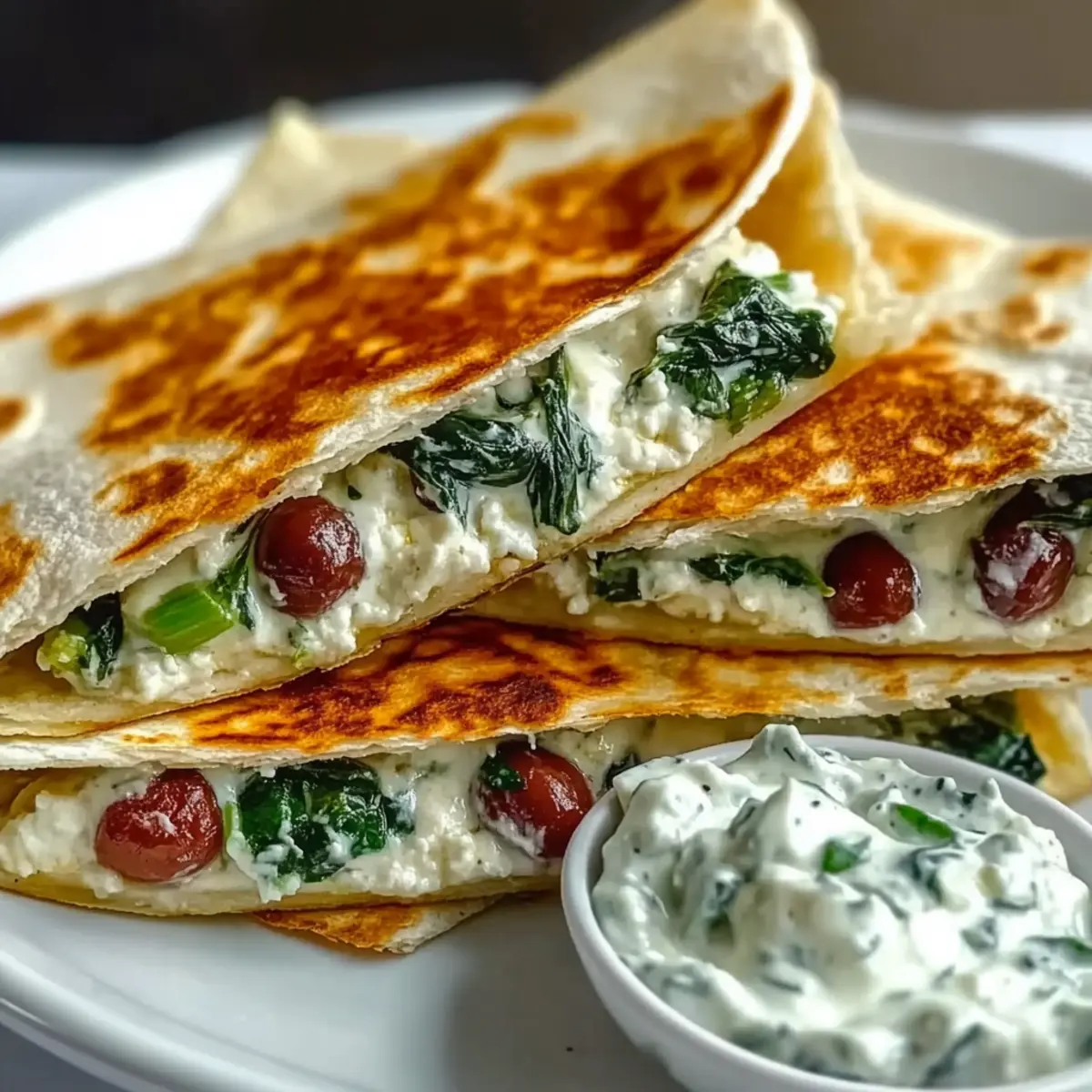 Creamy Tzatziki: A cool, refreshing dip that adds a tangy contrast to the warm quesadillas, balancing flavors beautifully.