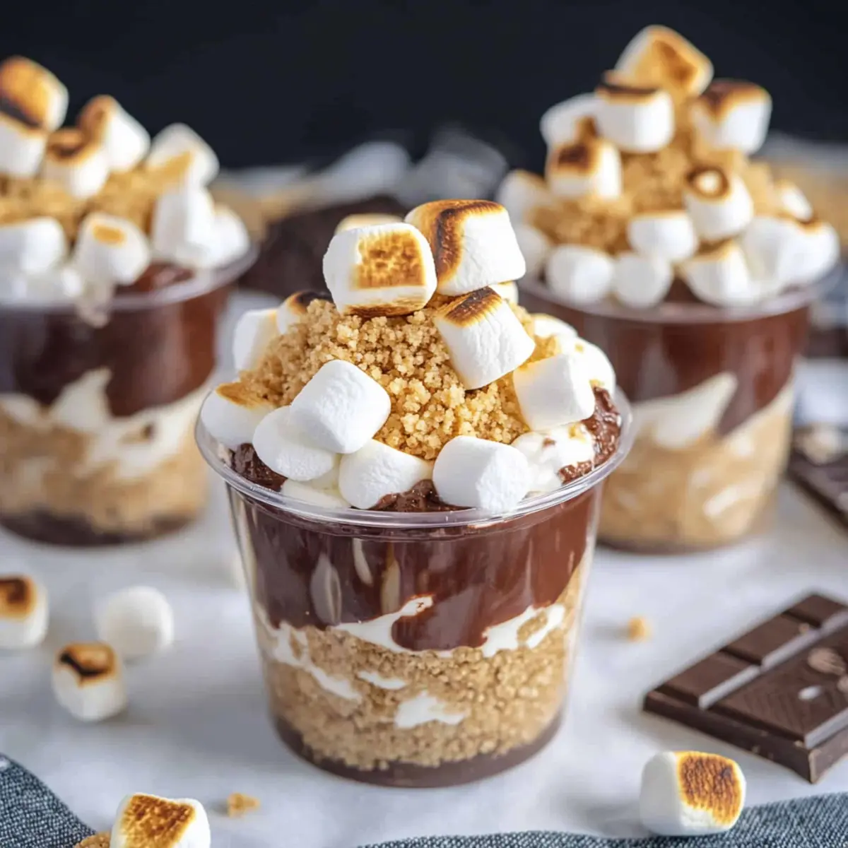 These No Bake S’mores Parfaits are a fantastic option for meal prep enthusiasts looking to save time during busy weekdays! You can prepare the chocolate pudding and graham cracker crumbs up to 24 hours in advance, storing the pudding in an airtight container in the refrigerator to maintain its creamy consistency. Additionally, you can layer the parfaits without the whipped topping and marshmallows up to 3 hours ahead of serving. Just remember to cover them tightly to keep the layers fresh. When you’re ready to serve, simply add the whipped topping and sprinkle the mini marshmallows on top. A quick toast with a kitchen torch will provide that signature s’mores flavor, ensuring your parfaits remain delicious and delightful!
