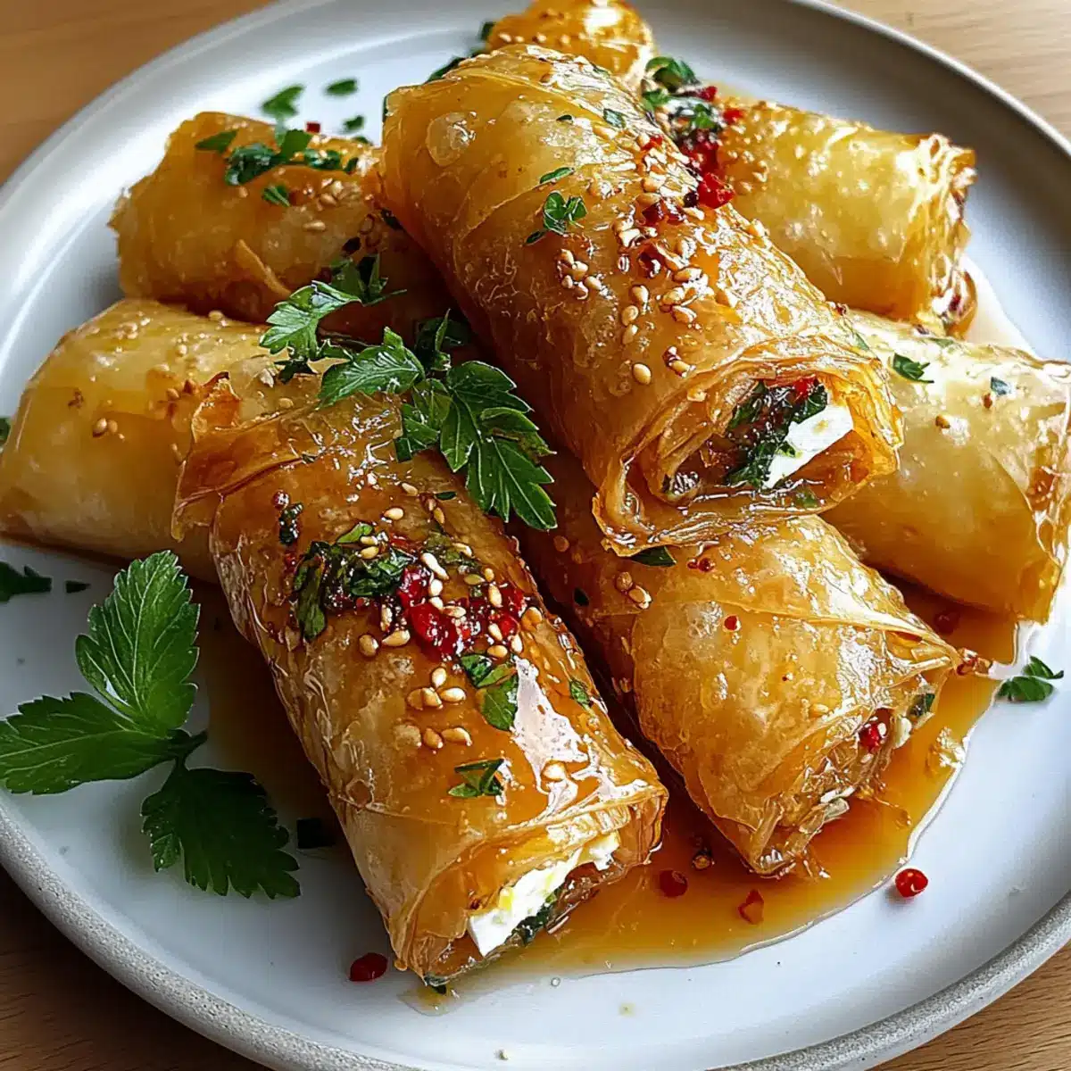 Oven Fried Feta Rolls with Chili Honey: Irresistibly Crispy Treats