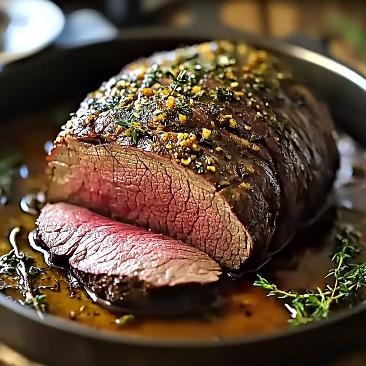 - Mix softened butter, minced garlic, prepared horseradish (or Dijon), and herbs together, then slather onto the seared beef.