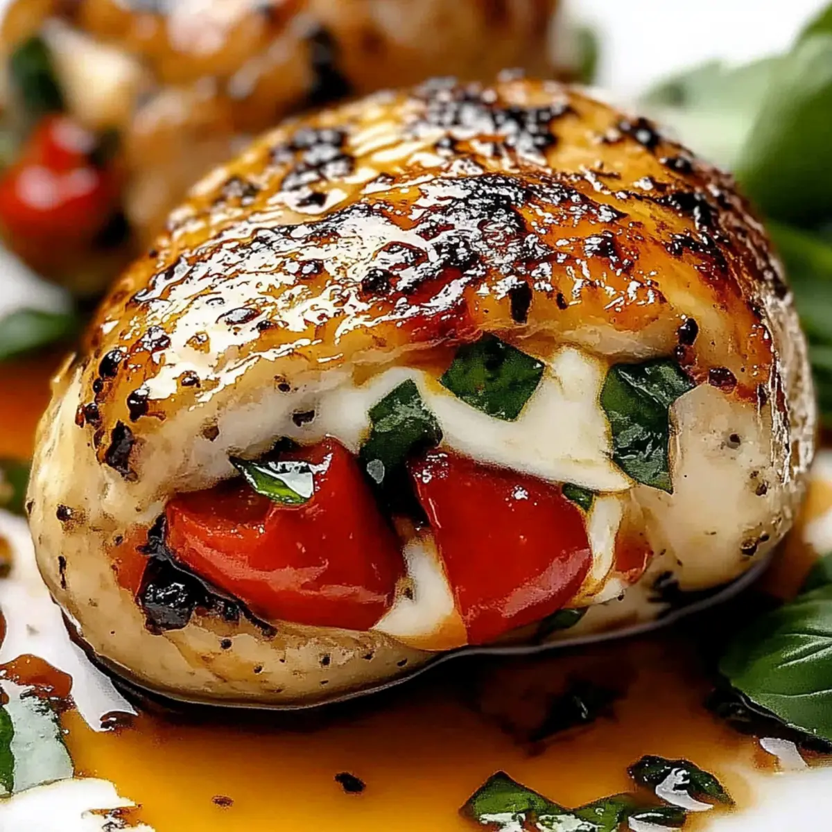 Absolutely! When choosing roasted red peppers, look for ones that are vibrant in color without dark spots or blemishes. If you’re using fresh mozzarella, opt for creamy, soft cheese that feels slightly springy to the touch. For the chicken, look for breasts that are pale pink and have a clean smell; avoid any that appear slimy or discolored.