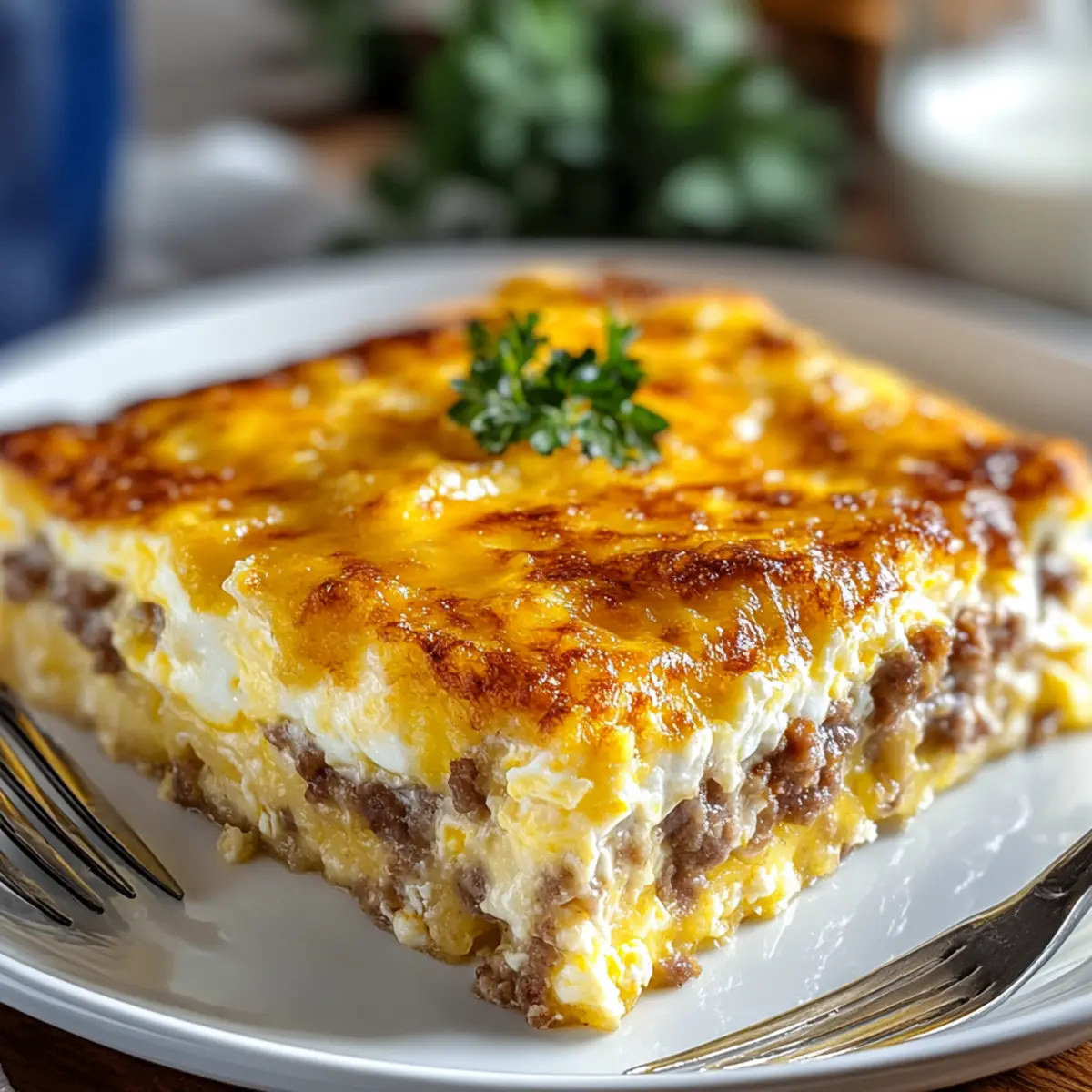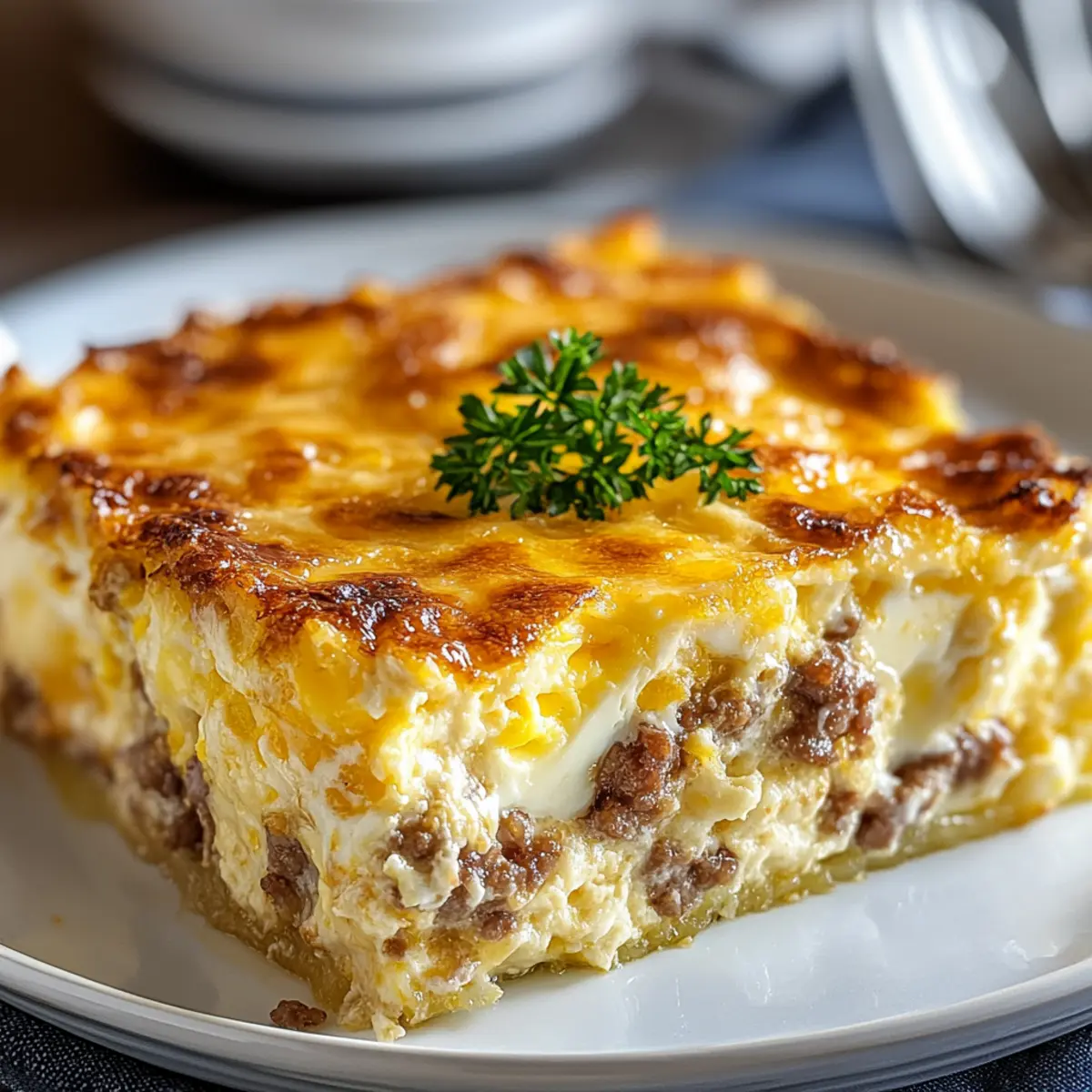 Sausage, Egg, and Cream Cheese Hashbrown Casserole Bliss