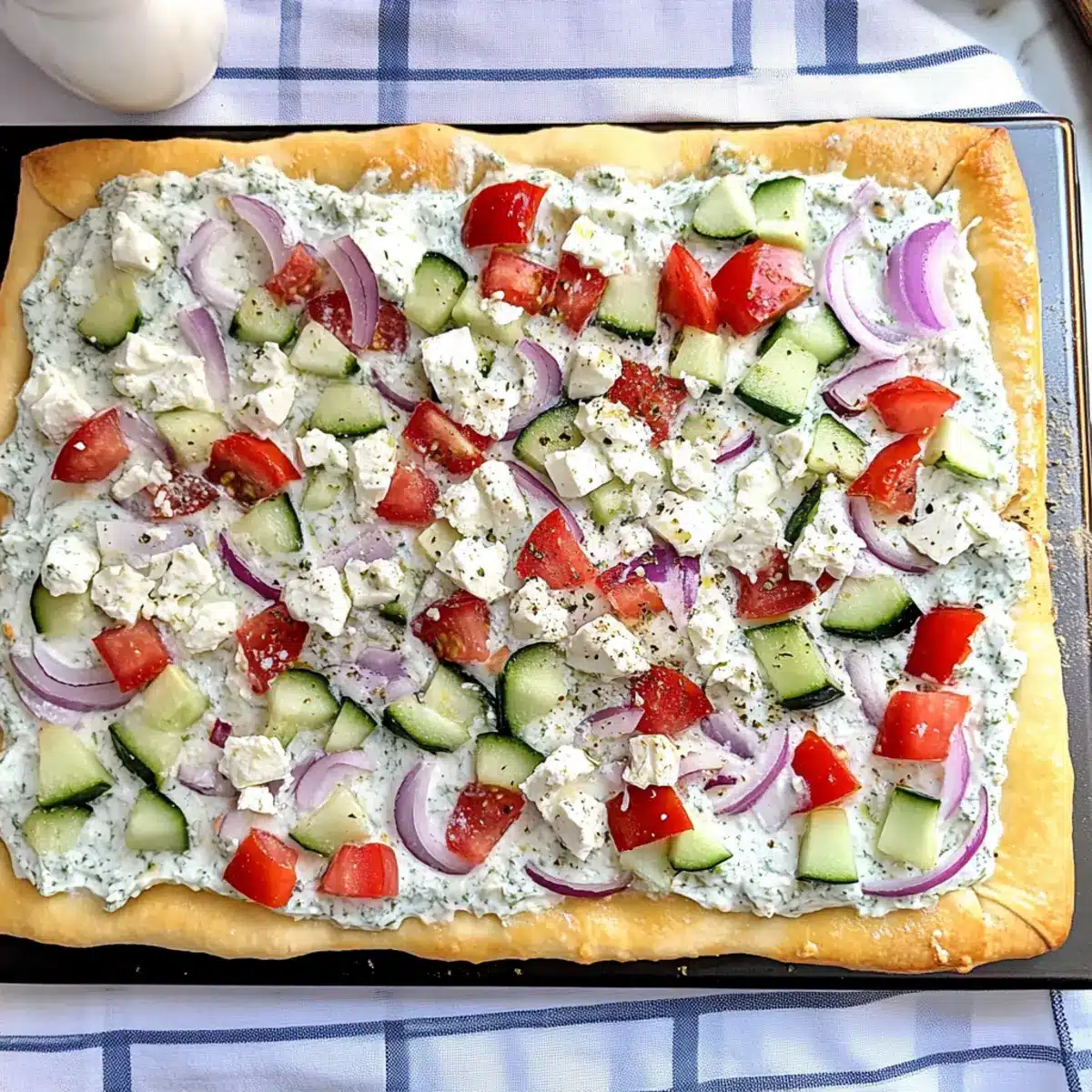 Cool the Crust: Let the crescent sheet cool completely before adding Tzatziki sauce. This prevents a soggy base and keeps your pizza crisp.