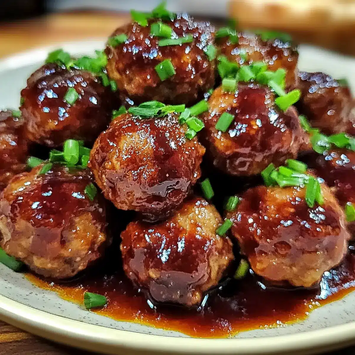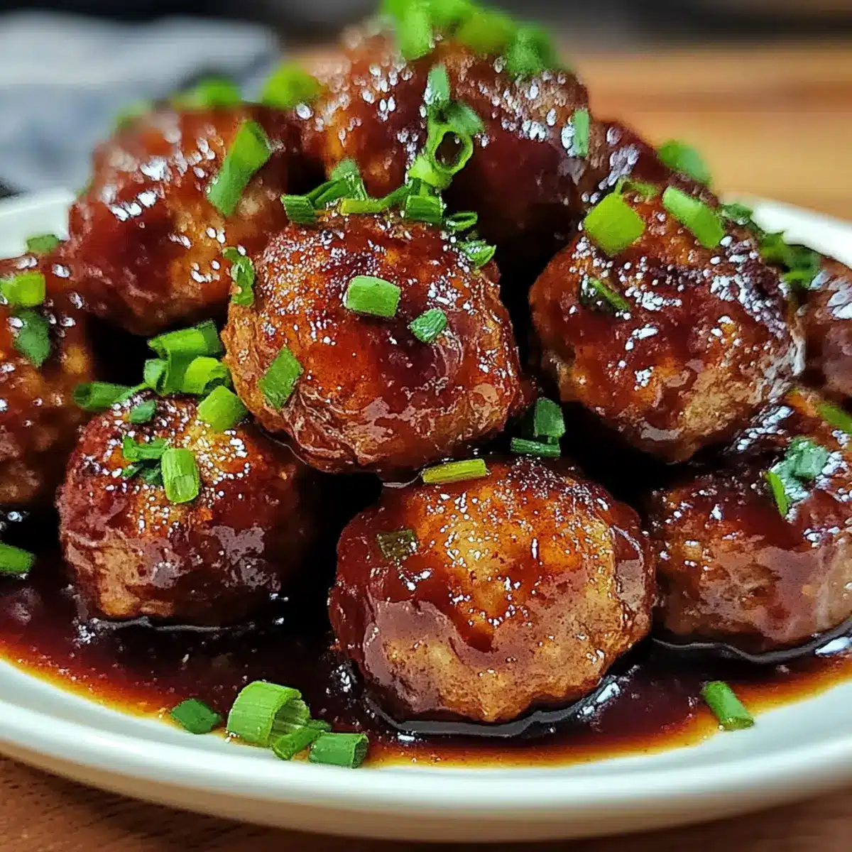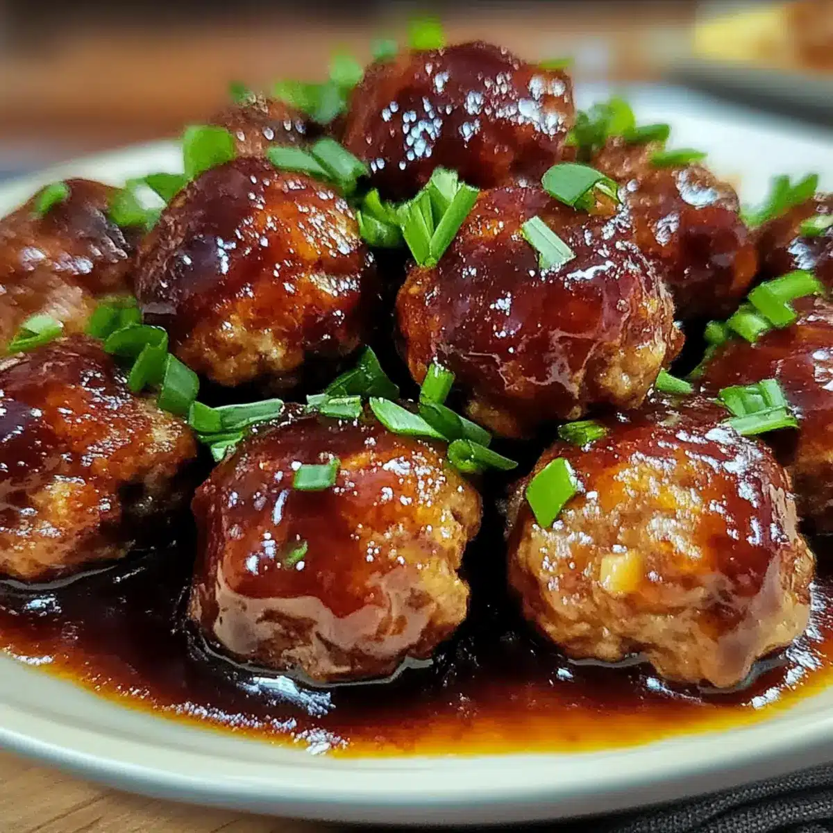 - Transfer the meatballs to a serving platter, drizzle with remaining sauce, and garnish with sliced green onions before serving.