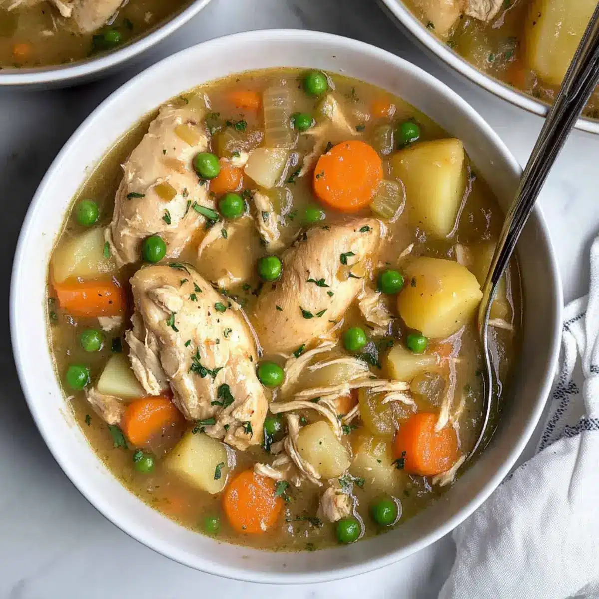 To ensure everything is perfectly cooked, make sure the internal temperature of the chicken reaches 165°F (75°C). If you’re using a meat thermometer, insert it into the thickest part of the chicken. Additionally, the chicken should be tender and easily shred with a fork when fully cooked. Enjoy your wholesome Slow Cooker Chicken Stew!