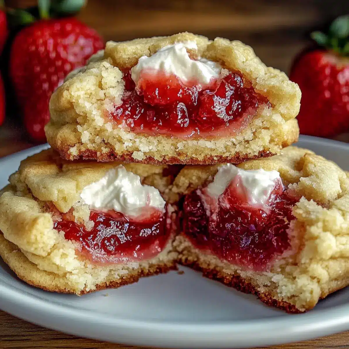 Great concern! While strawberries are generally safe for dogs, the sugar and cream cheese in these cookies are not suitable for pets. If you’re baking for a furry friend, it’s best to keep these indulgent treats off their menu.