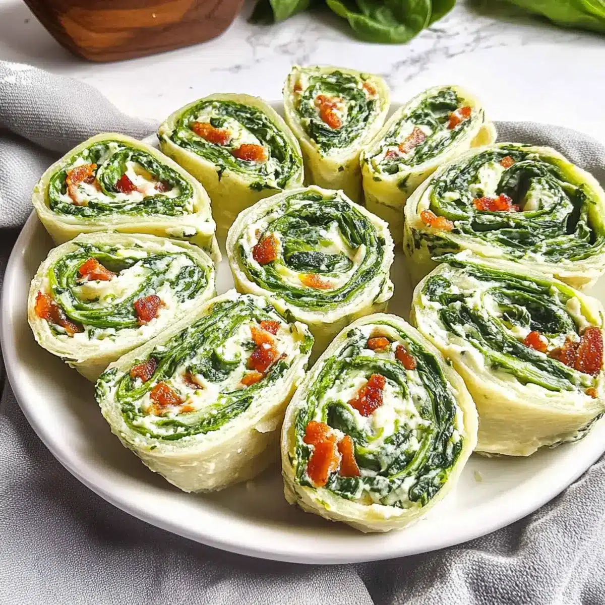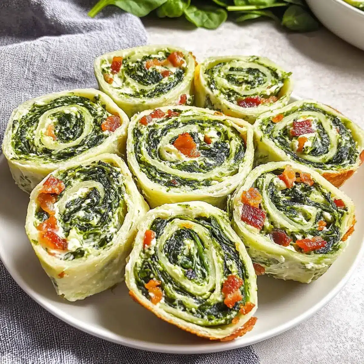 Flavor Explosion: These pinwheels are a delightful fusion of creamy spinach and savory bacon, delivering a burst of flavor in every bite.