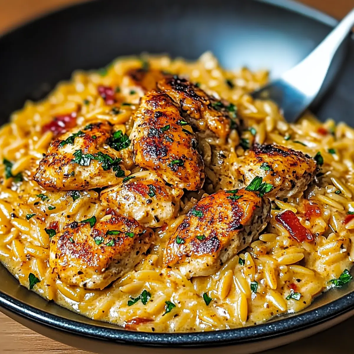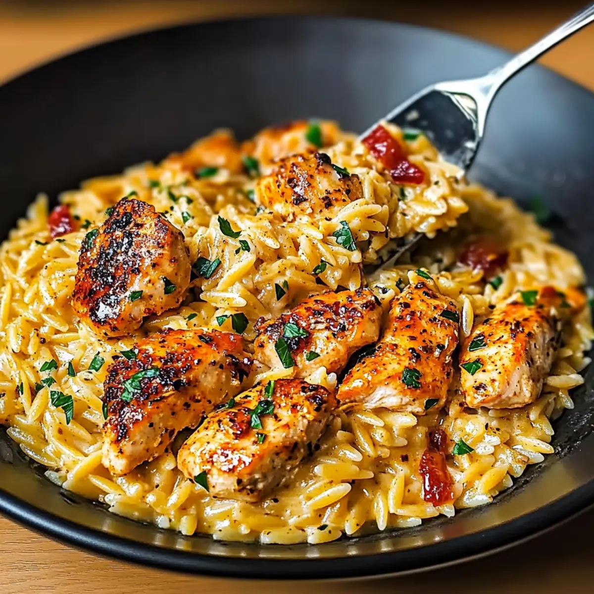 - Return chicken to skillet, mixing with orzo and sauce. Taste and adjust seasoning if necessary. Let rest for 2-3 minutes before serving, garnished with fresh parsley.
